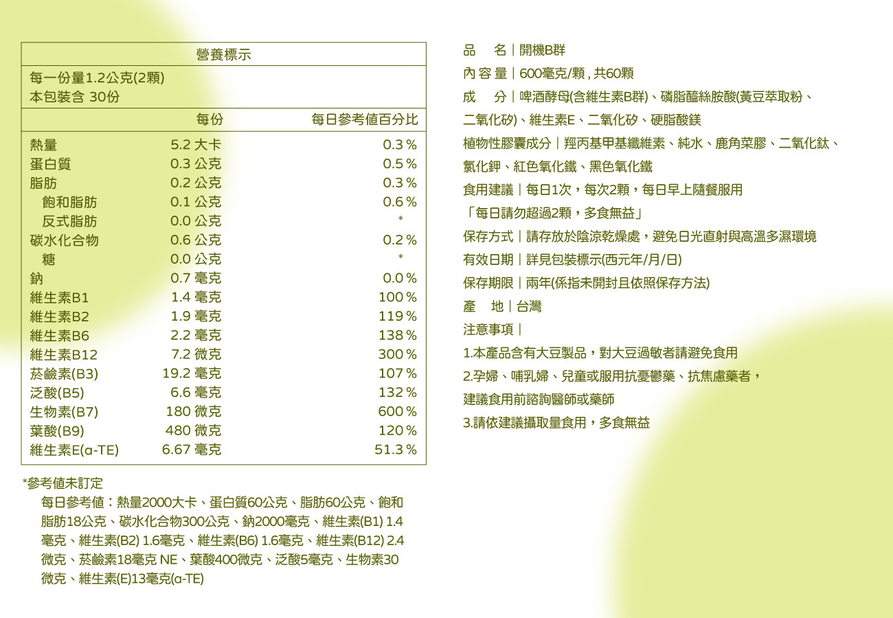 【自然酵母B群】模擬食物型態 吸收率高 溫和不刺激