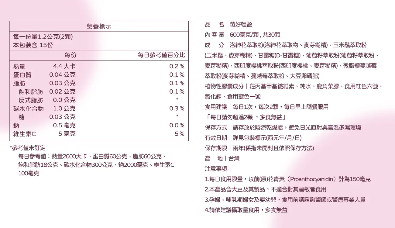 孕婦、哺乳期婦女,食用前請諮詢醫師